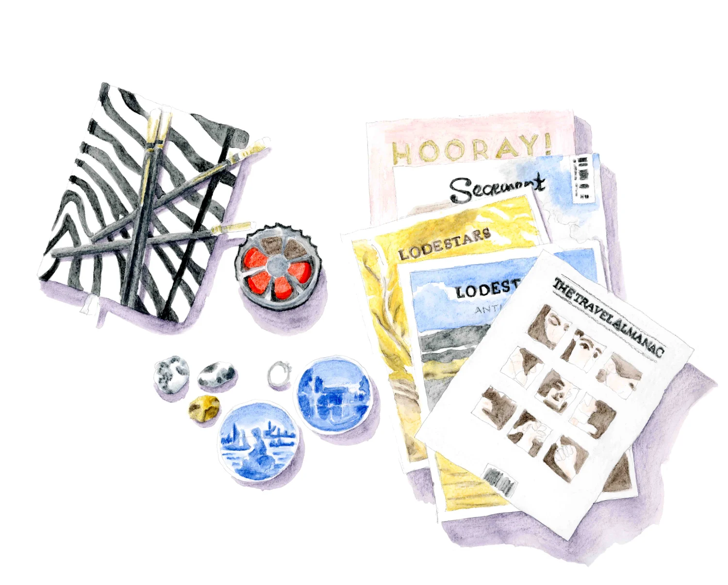 Tools & Talismans is a personal painting project where I document {in watercolor} the tools and talismans of 100 different women — creators and healers, thinkers and makers, wordsmiths and visionaries. Join me for a year of Tools & Talismans — I'll be sharing a new painting with you every Wednesday.
