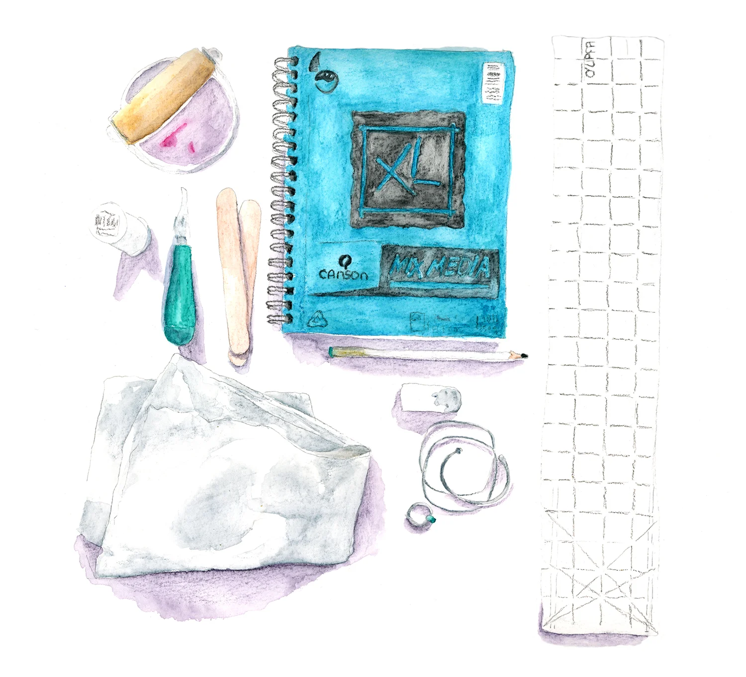 Tools & Talismans is a personal painting project where I document {in watercolor} the tools and talismans of 100 different women — creators and healers, thinkers and makers, wordsmiths and visionaries. Join me — I'll be sharing a new painting with you every Wednesday.